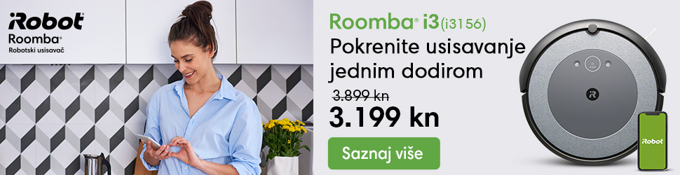 Iskoristite novu akciju do 30.06.2021. i nabavite Roombu i3(i3156) po cijeni od 3.199 kn. Uz novu Roombu i3(i3156) donosimo vam akcijske cijene i za još nekoliko modela pa tako možete nabaviti i Roombu 694 po akcijskoj cijeni od samo 1.799 kn, Roombu i3+(i3558) po akcijskoj cijeni od 4.999, 2u1 robotski usisavač i perač podova Roomba Combo (i1138) po akcijskoj cijeni od 2.599 kn te robotski perač podova Braava jet m6 po akcijskoj cijeni od 4.199 kn. Akcijske cijene su dostupne na iRobot Hrvatska maloprodajnim mjestima (internet trgovina www.irobot.hr , iRobot kiosk u Arena centru u Zagrebu i iRobot kiosk u City Center One u Splitu ), te kod ovlaštenih prodavatelja: Sancta Domenica , EMMEZETA , Elipso , Harvey Norman , Svijet Medija , eKupi , Bazzar .
