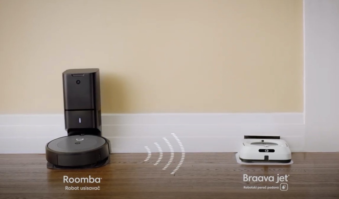 Na koji način ova dva robota komuniciraju? iRobot Roomba po završetku svog rada, suhog čišćenja podova odnosno usisavanja se vraća na svoju baznu stanicu i tada šalje signal iRobot Braavi jet m6, robotskom peraču podova da može započeti i mokro pranje podova. Njihova komunikacija je savršeno usklađena, Braava neće započeti svoj posao dok Roomba ne završi svoj dio, naravno samo ako ste vi to tako tražili.
